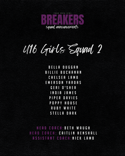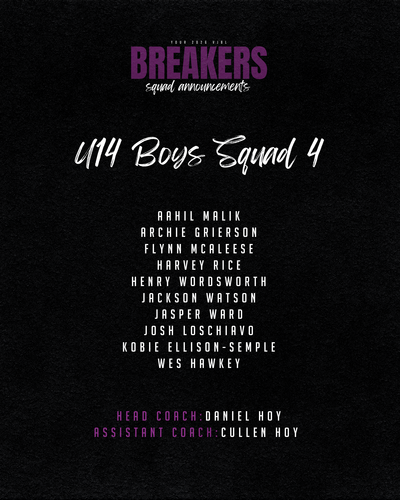 - Breakers Player Pathway meeting – 7.45pm – 8.15pm
